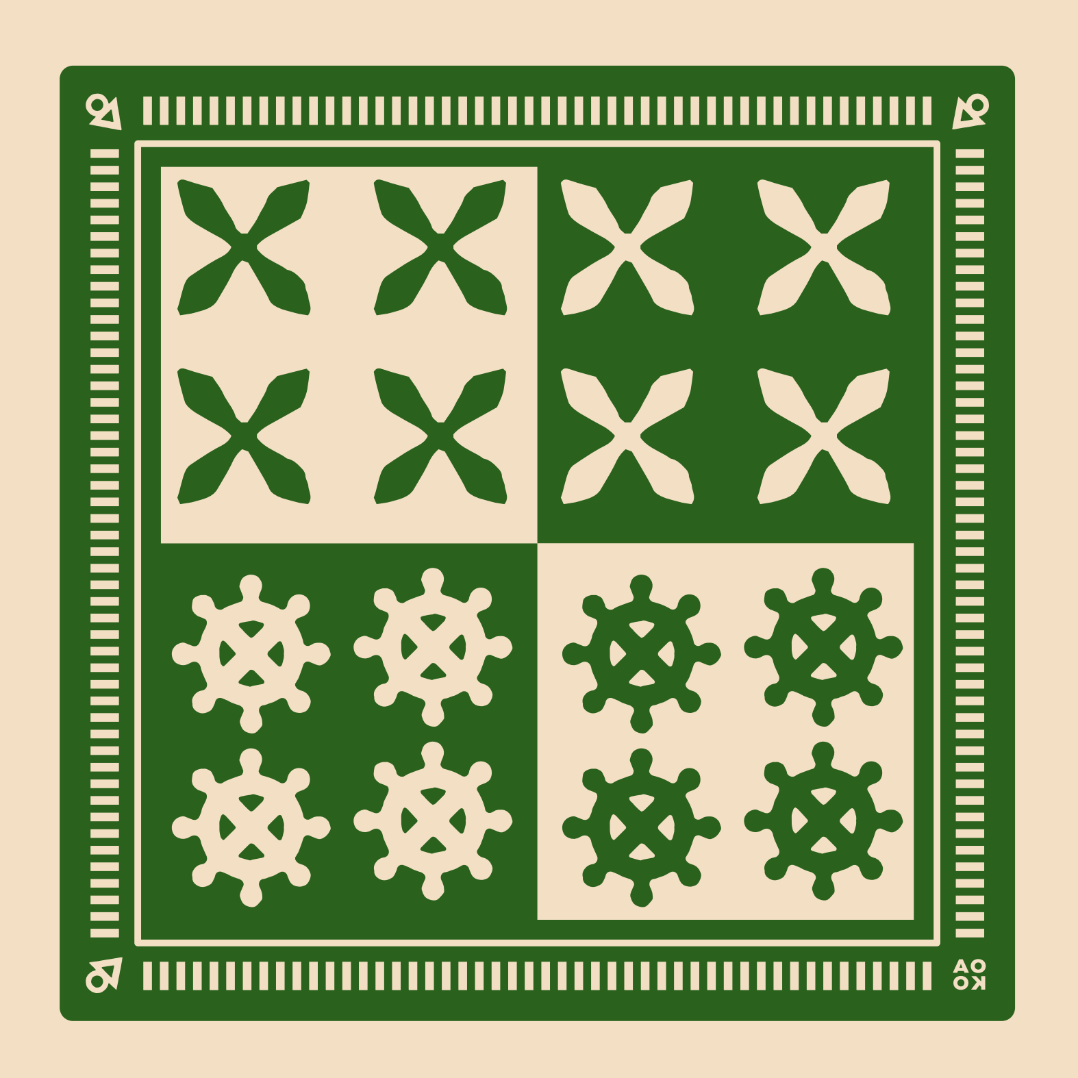 This bandana makes a bold statement with its striking graphic. Featuring three Adinkra symbols representing sweetness, watchfulness, and justice, it captures the rich complexity of life.
