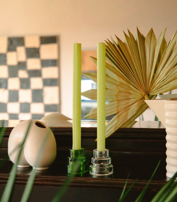 Taper Candles come in a variety of playful silhouettes and whimsical colors- a bit of joy for your tabletop. Burn them, or don't! They look great either way. Designed by Areaware in collaboration with Dusen Dusen- a brand known for its bold, original patterns.