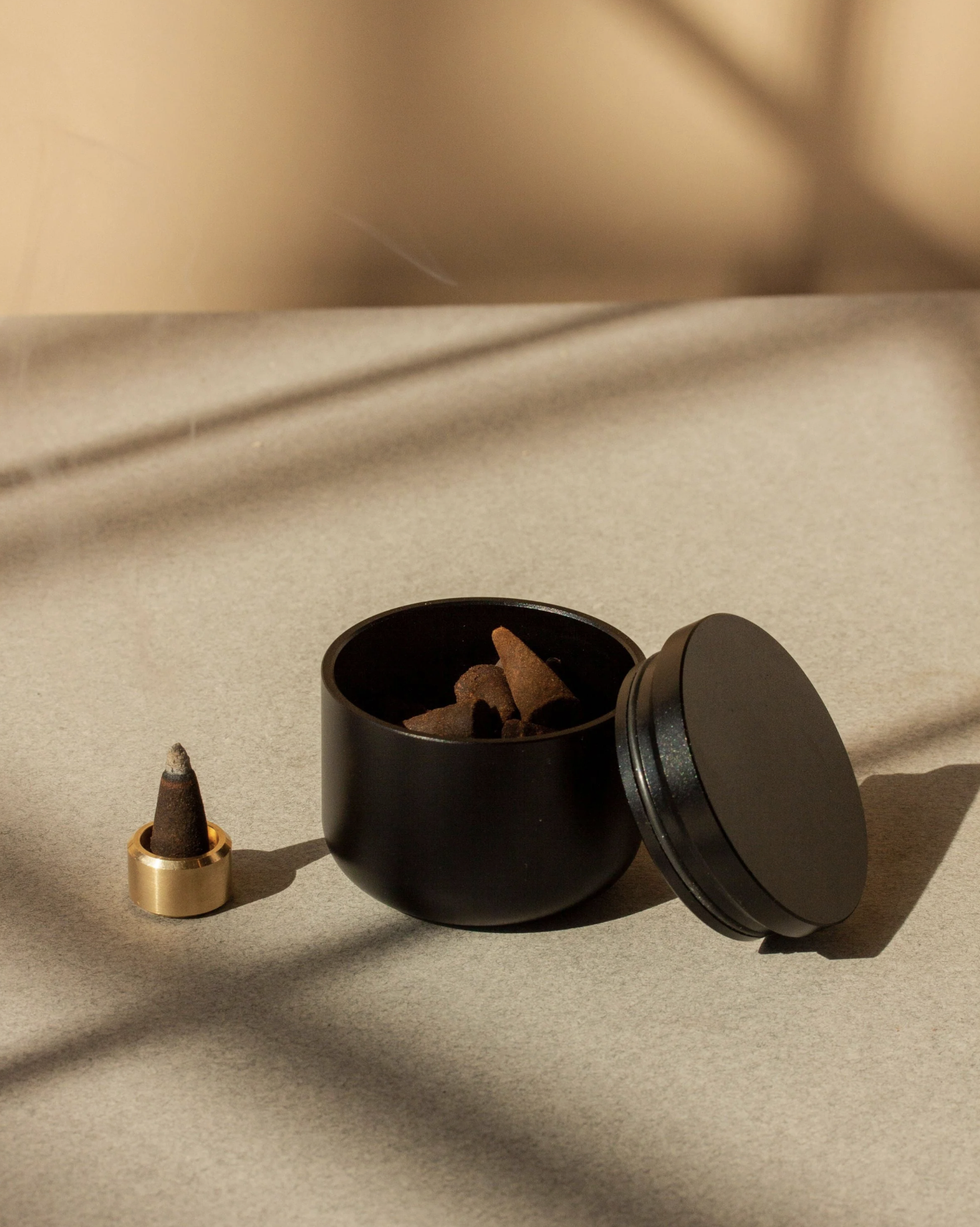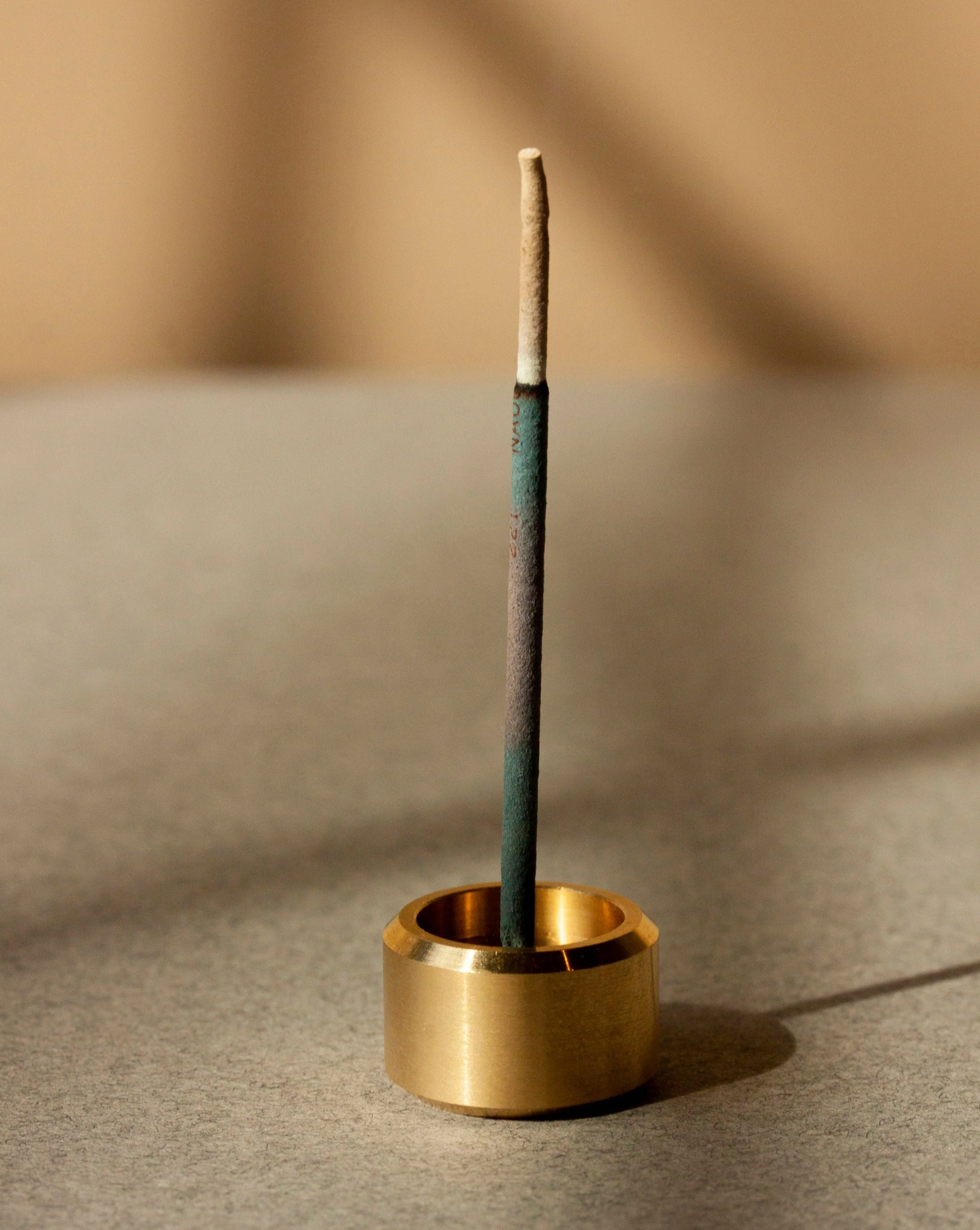 Fashioned from solid brass, it features a delicately chamfered edge, a small cavity for cone incense, and an interior hole for stick incense. Like so many of Craighill's products, it possesses a surprising and pleasant heft.