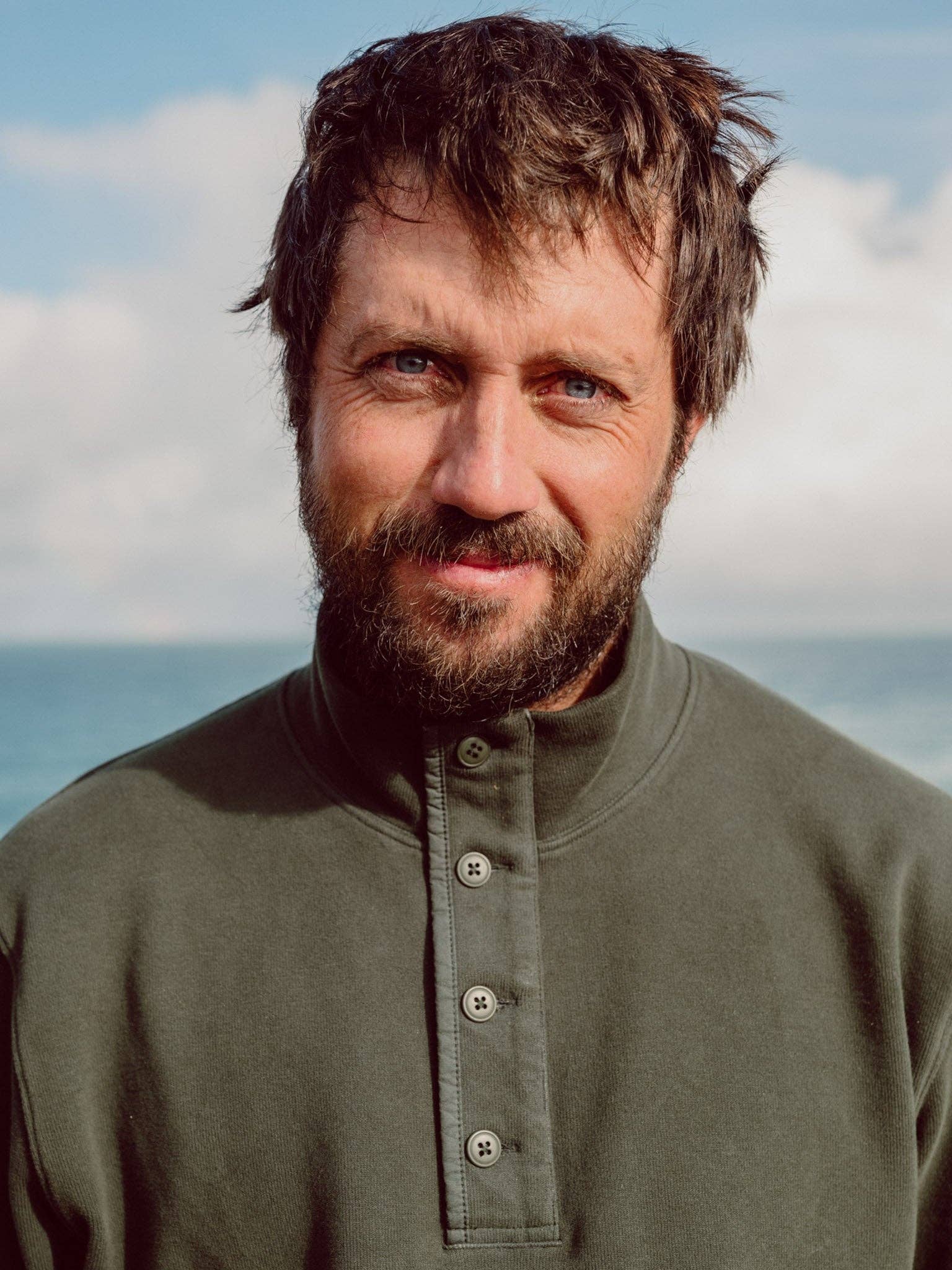A lightweight pullover for walks through the forest. This sweatshirt features a mock turtleneck with buttons and ribbed closures at the wrist. Zachk is 6'1" and wearing size L. * 100% Cotton Outer, 100% Poly Lining * Preshrunk