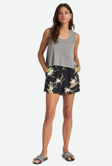 The Paradise Shorts are a match made in heaven for holidays and summer stays. Made with flowing viscose in custom tropical prints. These pair flawlessly with the Bunker Paradise S/S Woven or any crop in your closet. Featuring an elasticized waistband for a seamless fit.