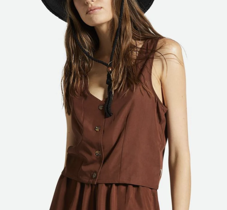 A relaxed fit tank with Brixton logo buttons. Wears great with shorts, jeans, skirts and everything in between.