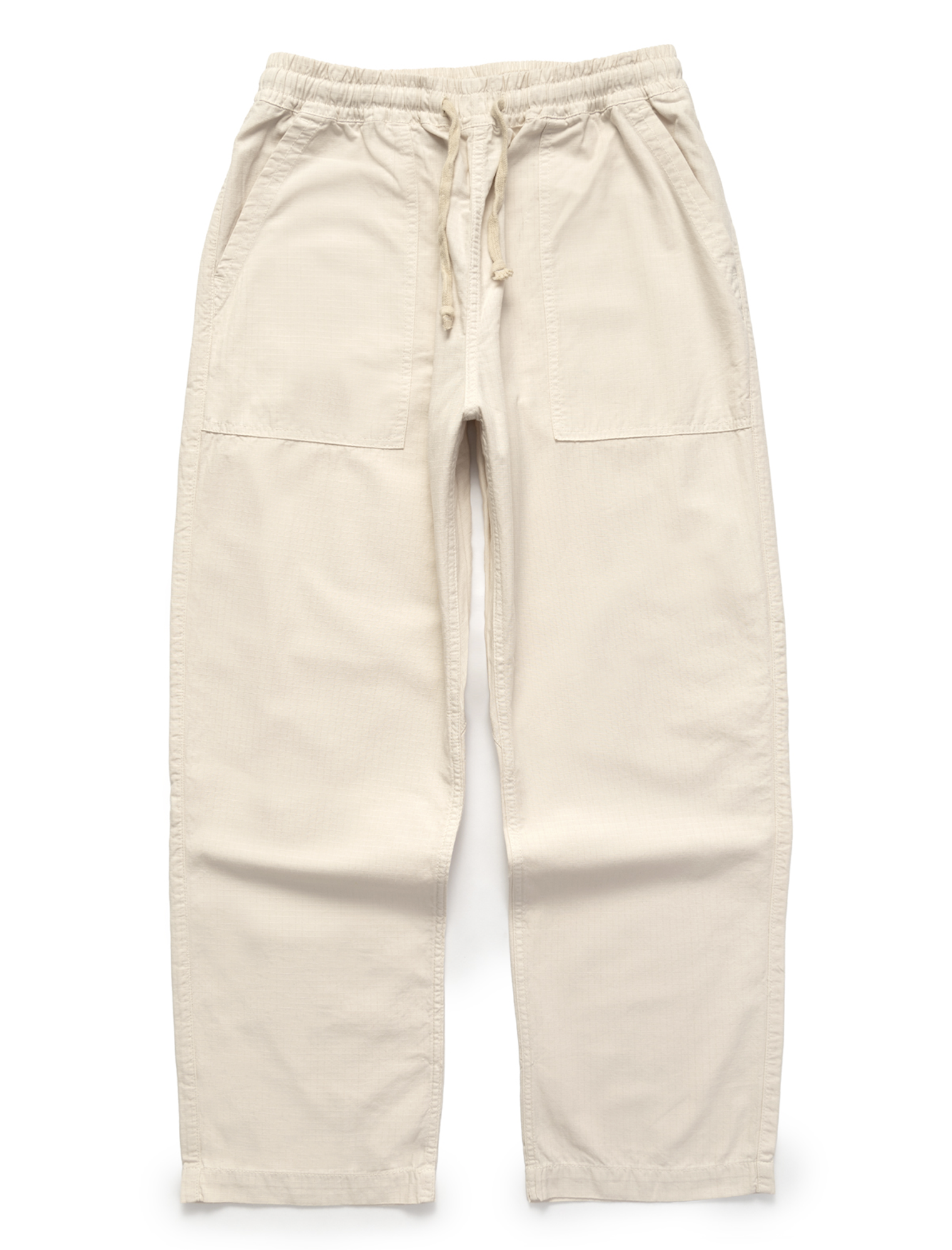 Ripstop Chef Trousers by Service Works. Classic relaxed fit leg. Adjustable waistband with internal drawstring. Fatigue front pockets. Rear pockets with woven label.