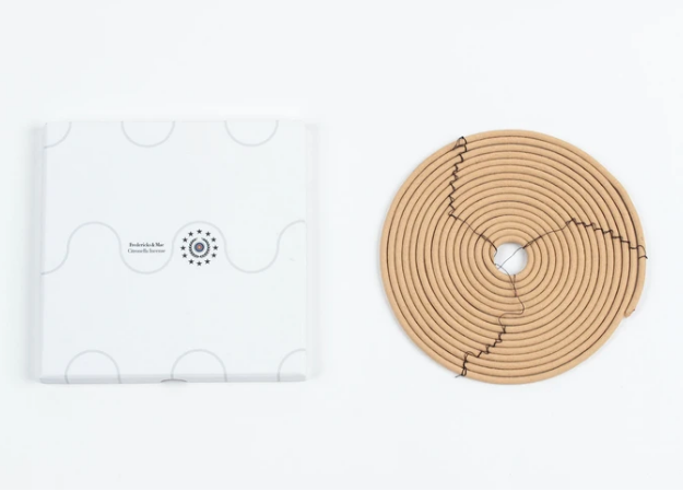Hanging citronella coil to keep insects at bay. Hang this all-natural citronella incense outdoors, light up on one end, and enjoy a long burn time, and a fragrant, floral smell. For outdoor use only. Comes packaged in a paper box.