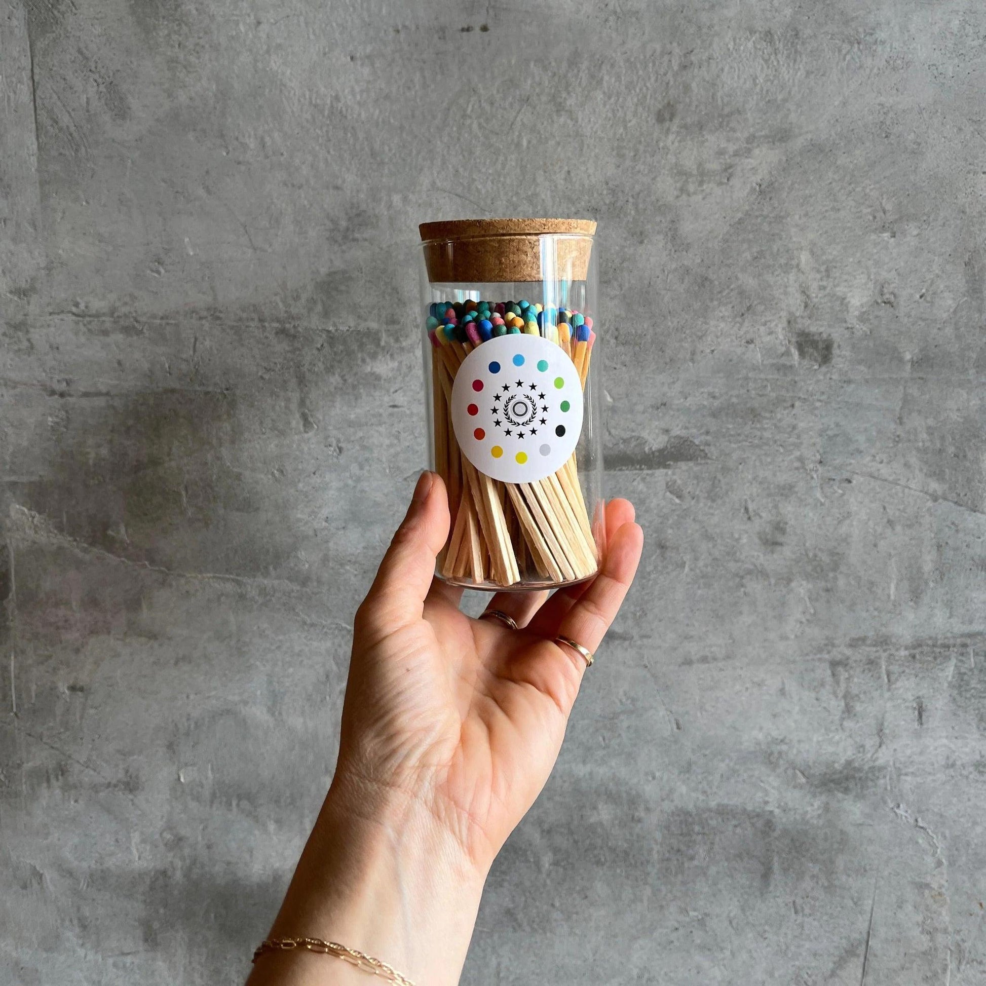 Introducing Colorful Matches from Fredericks and Mae - the stylish way to start fires! No more fumbling for a matchbox or burning your fingers. These larger-than-normal matches come in a cork-topped glass tube with a strike pad on the bottom. Upgrade to our sleek and convenient colorful Matches and start fires like a pro - no sunny days required!