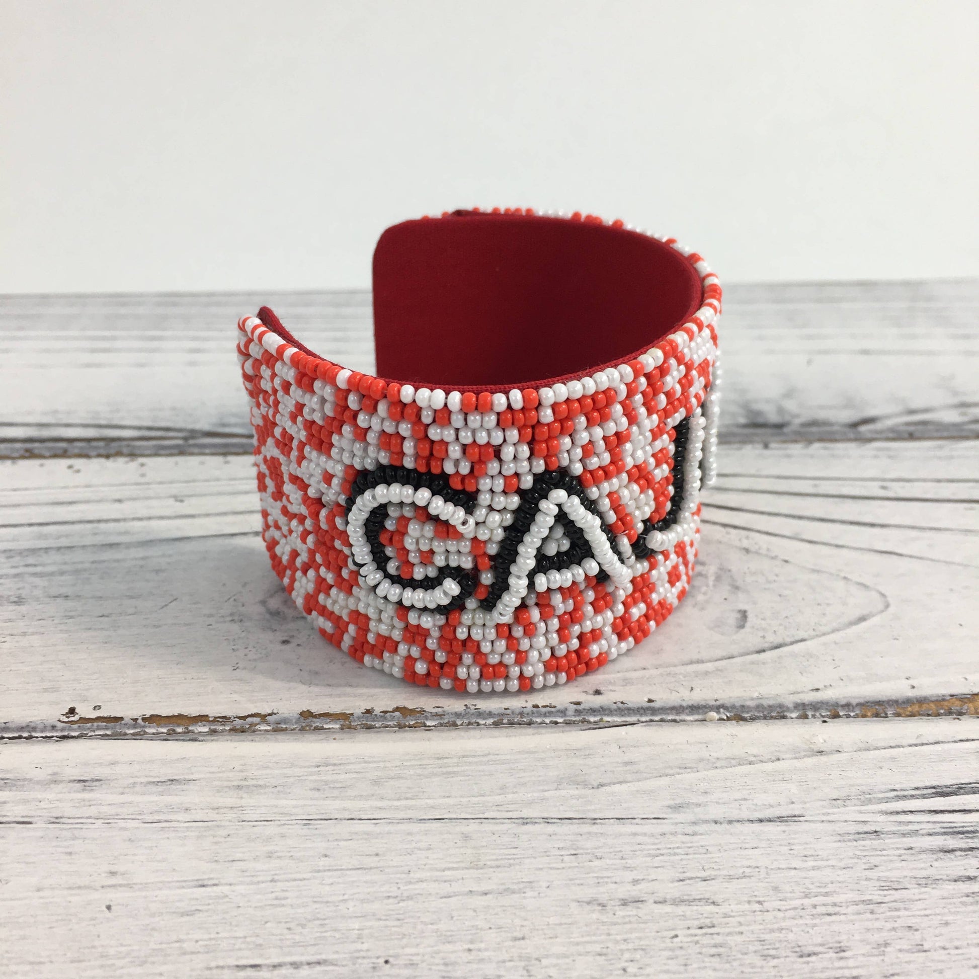 This is our gorgeous beaded CAJUNS cuff bracelet! This item is so fun and cute and perfect for game days and team pride!