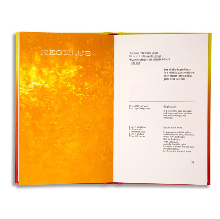 From the dazzling Regulus, whose saffron ice cube spreads its light in the vermouth, to Grand Soir, a political sunset that infuses the charcoal into the vodka.